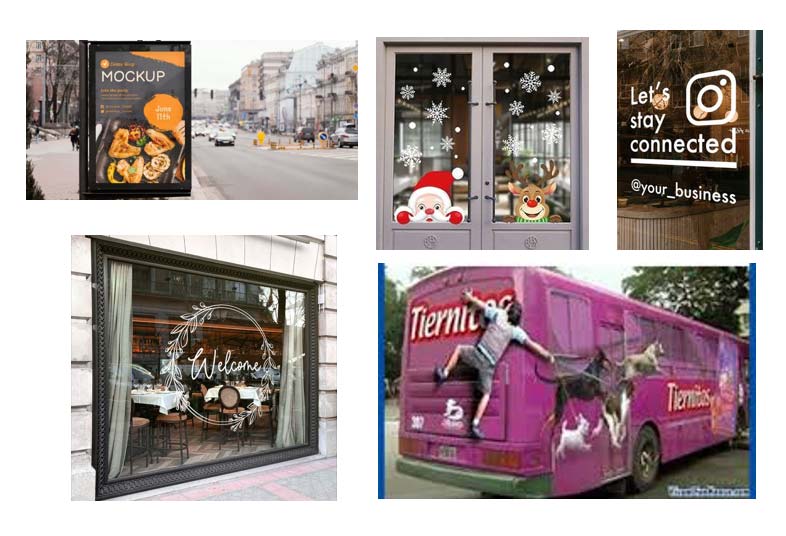 1- استیکرها در ابعاد بزرگ نیز چاپ میشوند ،جهت استفاده برروی شیشه فروشگاه ها در خصوص اعلام تخفیفات یا تزئینات ، یا بر روی اتومبیل های حمل محصولات برندهای خاص ، تبلیغات روی اتوبوس ها ، تبلیغات محیطی و بیلبوردها .