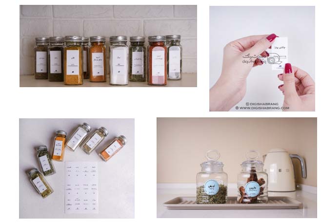 2- از استیکرها در تزئین محیط خانه و آشپزخانه میتوان استفاده کرد بطور مثال جهت تزئین شیشه های ادویه ، شیشه های آب و نوشیدنی ها ، شیشه روغن ، شیشه های سبزیجات، شیشه افزودنی ها