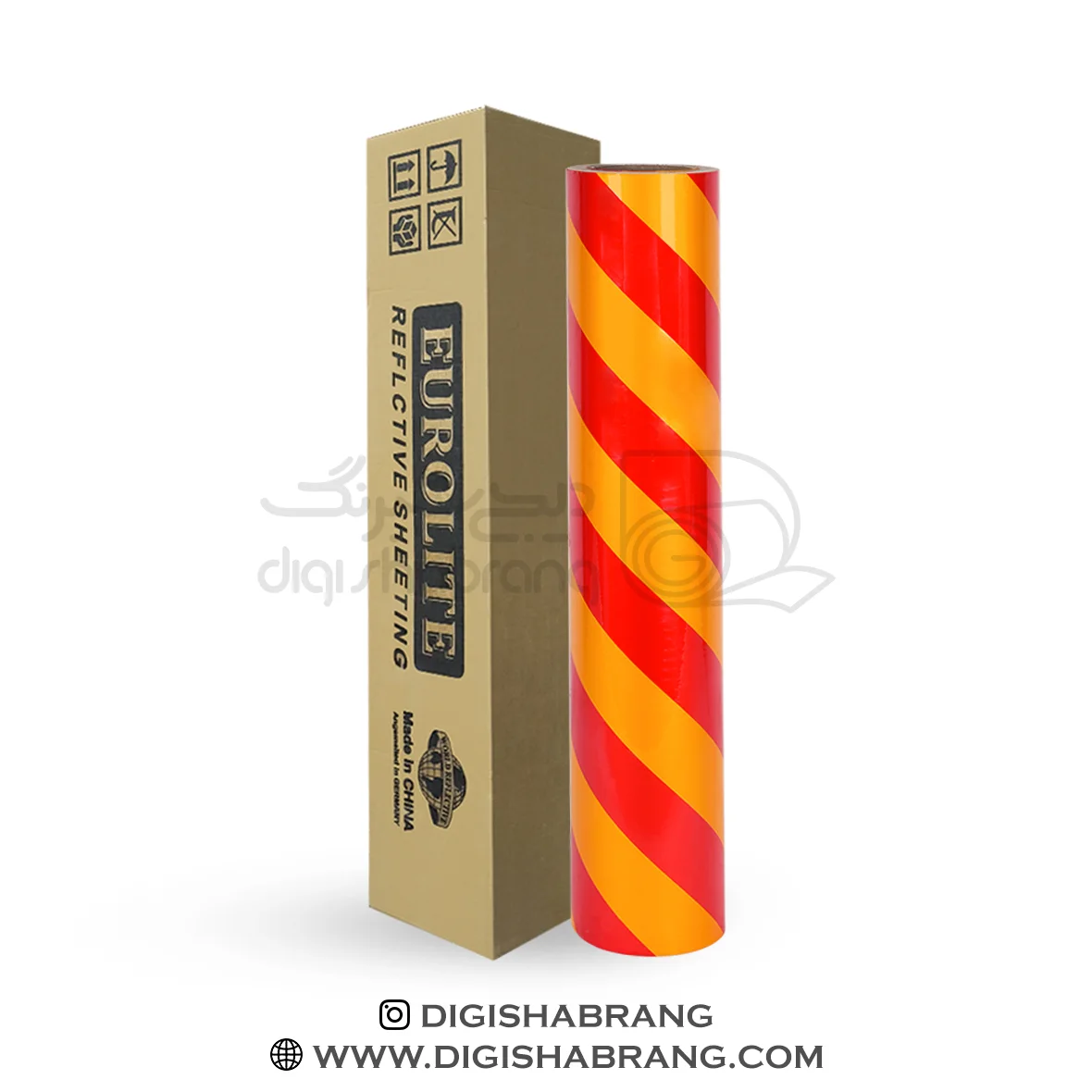شبرنگ اکریلیک چینی راه راه زرد – قرمز یورو لایت (62CM X 20M)
